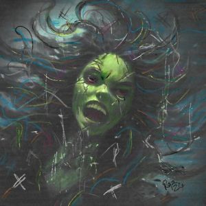 She is the River Hag, a malevolent freshwater mermaid or Nursery Bogey, who pulls children and the elderly underwater to drown and eat them!